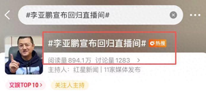 如果你是李亚鹏,会选择回归演艺还是继续直播?